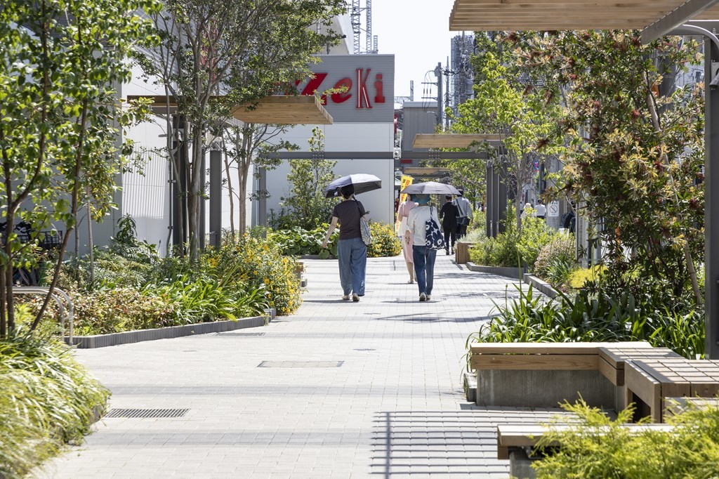 安全な歩行空間と豊かさを地域に提供する緑道でつながる個店の集合体
